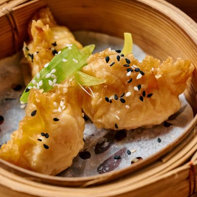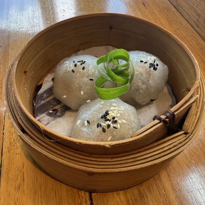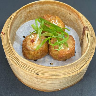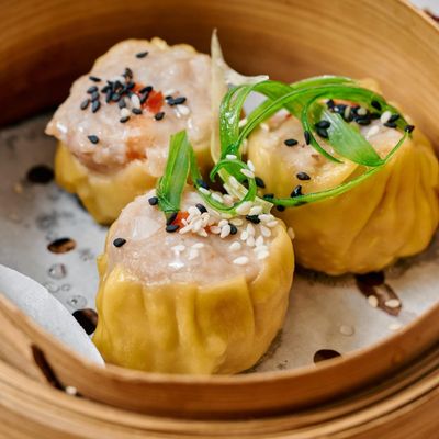 Pork and prawn shu mai, mixed sesame seeds and spring onion.