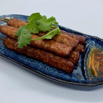 Vietnamese pork sausage skewers served with sweet chilli sauce.