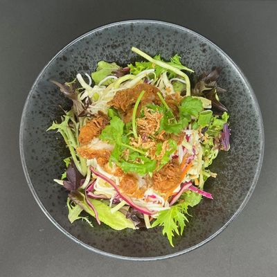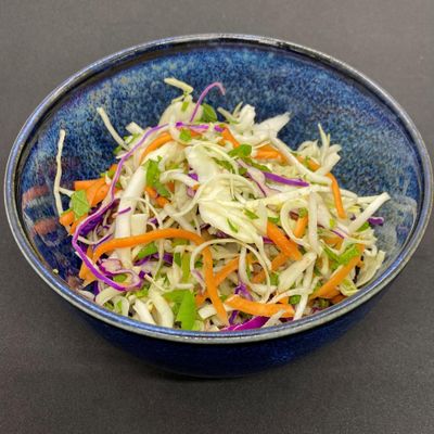 A refreshing mix of granny smith apple, pickled carrot, red and green cabbage, mint, coriander dressed with a tangy sweet and sour sauce.