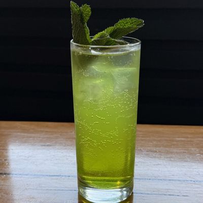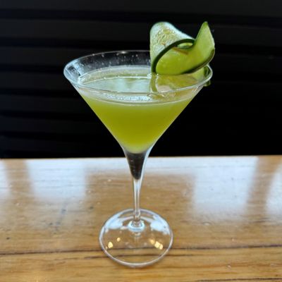A delicious mic of Tanqueray dry gin, Canton ginger liquor, honey, lemon juice, fresh Thai basil and cucumber shaken over ice.