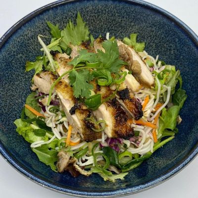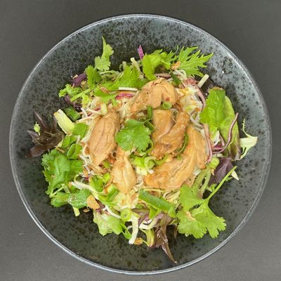 A delicious mix of fresh vermicelli noodles, mixed salad, apple, pickled carrot, red and green cabbageh, chopped mint, coriander dressed with a tangy sweet and sour dressing, topped with hand shredded chicken breast.