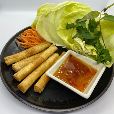 Vietnamese Spring rolls, served with lettuce cups, pickled carrot, Vietnamese mint, coriander and sweet chilli dipping sauce.