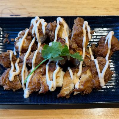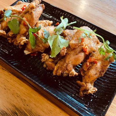 Crispy salt and pepper chicken ribs, birds eye chilli and coriander.